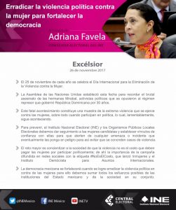 “Erradicar la violencia política contra la mujer para fortalecer la democracia”, artículo de Adriana Favela, en Excélsior