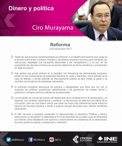 “Dinero y política”, artículo de Ciro Murayama, en Reforma
