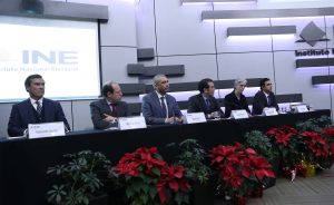 De izq. a der. Secretario Ejecutivo Edmundo Jacobo,Consejeros Electorales Marco Antonio Baños, Benito Nacif, Consejero Presidente Lorenzo Córdova, Consejera Pamela San Martín y Director de Prerrogativas y Partidos Politicos Patricio Ballados.