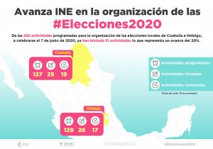Las actividades de las elecciones 2020, en Coahuila e Hidalgo, registran un avance de 20%