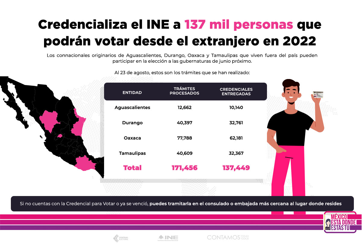 Las y los connacionales que vivan en el extranjero y sean originarios de Ags, Durango, Oaxaca y Tamaulipas podrán participar en la elección a gubernaturas en su entidad, desde el exterior