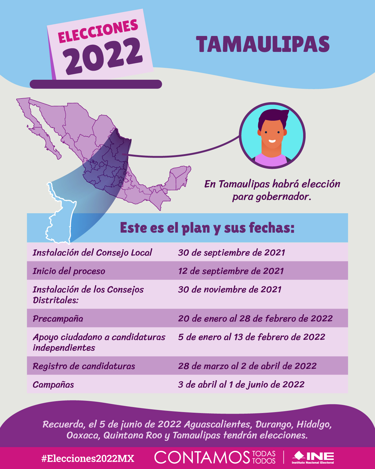 El INE y los OPL organizan de manera conjunta los procesos electorales de Aguascalientes, Durango, Hidalgo, Oaxaca, Tamaulipas y Quintana Roo