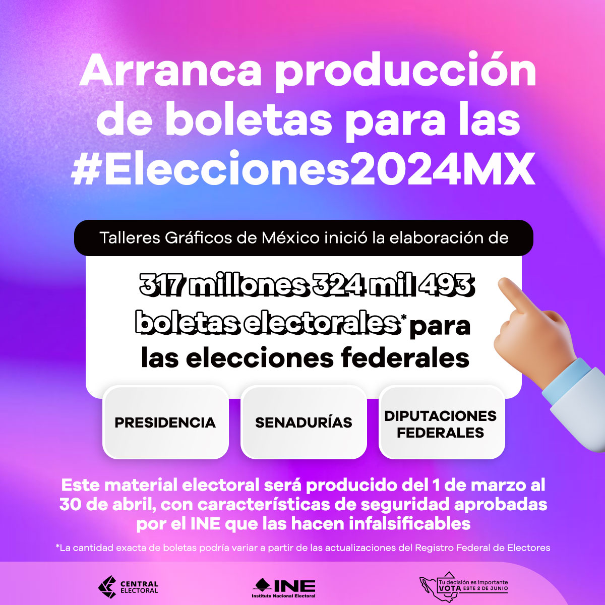 Talleres Gráficos de México inició la elaboración de más de 317 millones de boletas electorales
