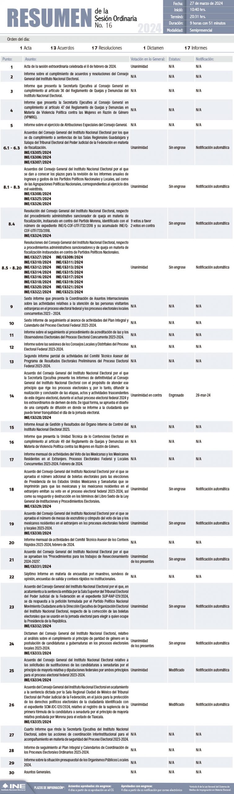Resumen de la Sesión Ordinaria del Consejo General, 27 de marzo de 2024