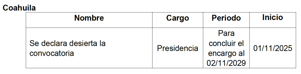 En tanto, el pleno designó 27 consejerías para 14 OPL que tomarán posesión el 1 y el 3 de noviembre próximos, conforme a lo siguiente: