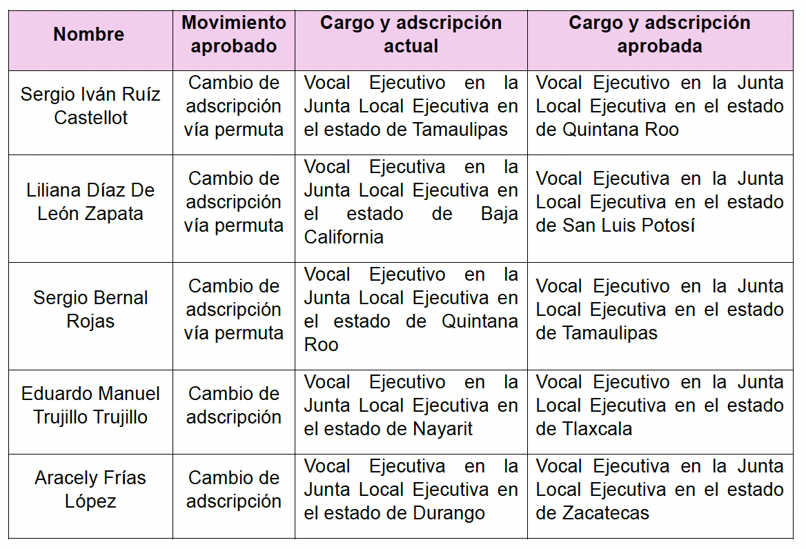 Captura de pantalla 2026-01-21 a la(s) 7.53.06 p.m. Deja un comentario / Por INE / 21 enero, 2026 Tabla 01 para Boletín 010, 2026. Aprueba JGE del INE 17 cambios de adscripción de Vocales Ejecutivos de Juntas Locales