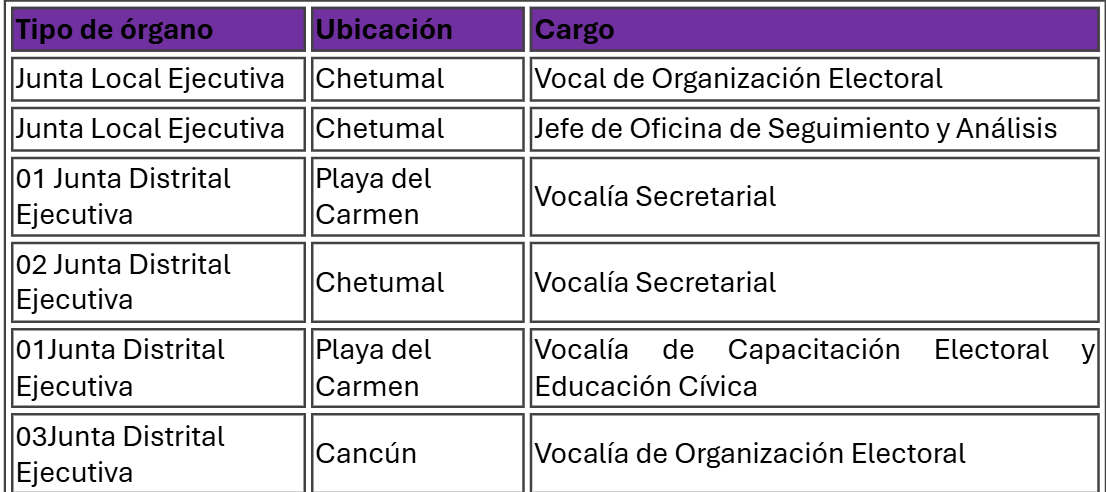 BOL13_2026_QROO_TABLA Deja un comentario / Por Redacción INE / 6 abril, 2026 Tabla con los cargos a elegir en el concurso SPEN 2026