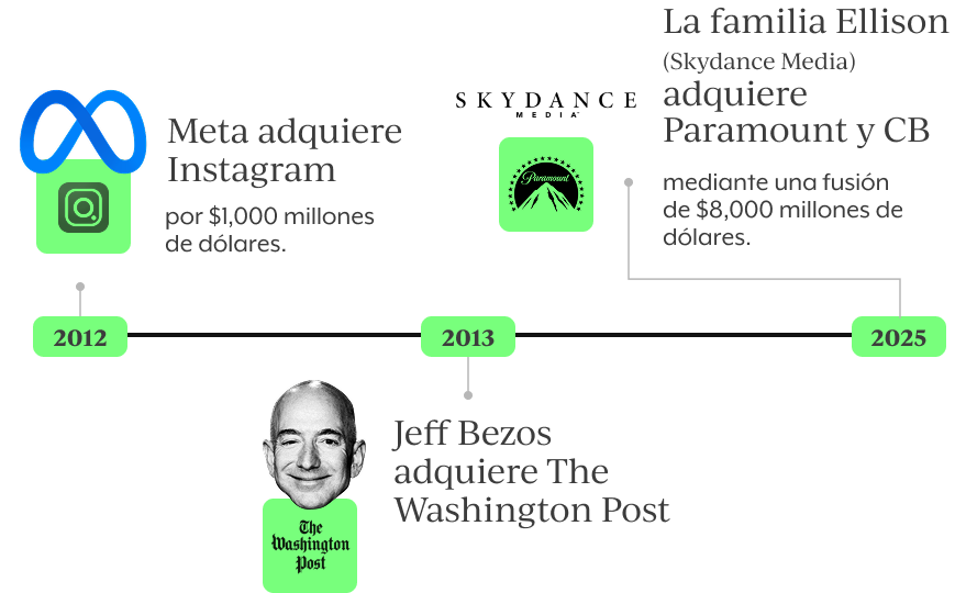 El reporte advierte que esta crisis ha abierto la puerta para que magnates como Larry Ellison o Jeff Bezos (fundador de Amazon) actúen como “rescatistas” de medios, en un proceso que no responde a criterios editoriales o democráticos, sino a la posibilidad de influir en la narrativa pública y en la información que circula en Internet.
